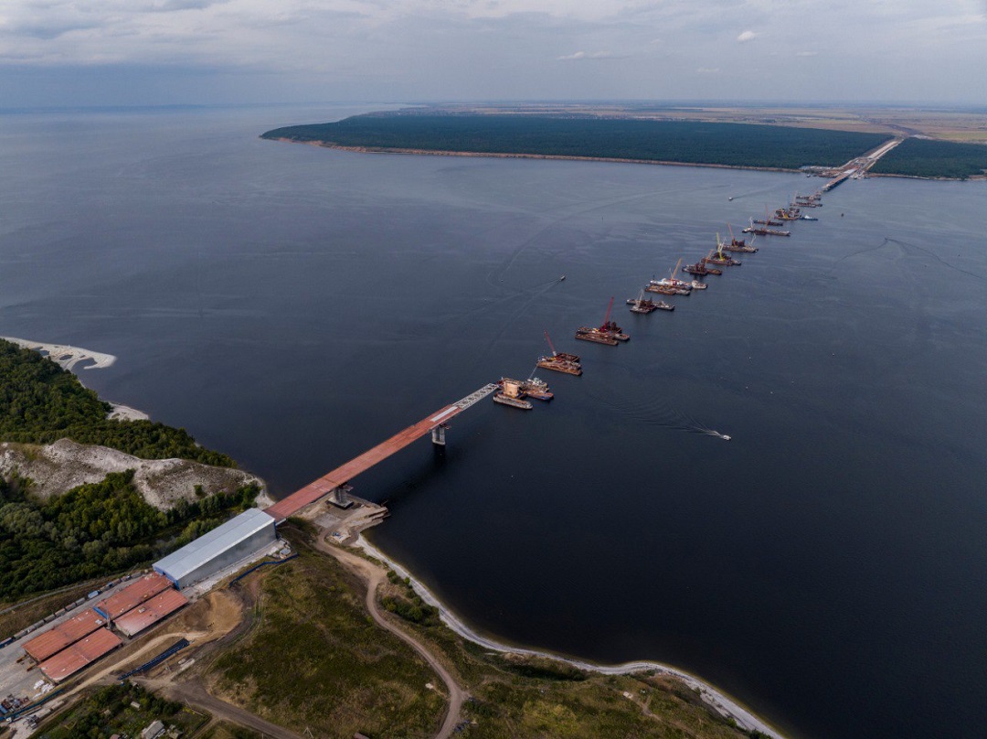 Общая длина мостовой конструкции над рекой Волгой составит почти четыре км, а протяженность новой дороги – около 100 км. В настоящее время готовность объекта в целом составляет более 60 %. Выполнение запланированного объема работ идет в соответствии с утвержденным графиком. Задействовано почти три тысячи человек, порядка 600 единиц техники, более 70 плавучих сооружений.