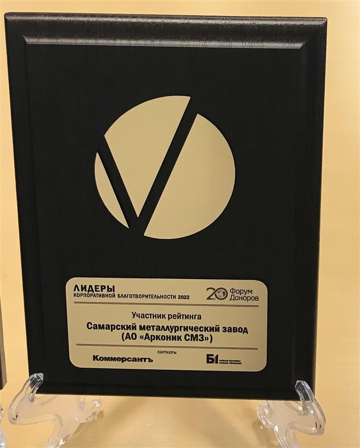 Самарский металлургический завод вошел в рейтинг "Лидеры корпоративной благотворительности" 2022 года.