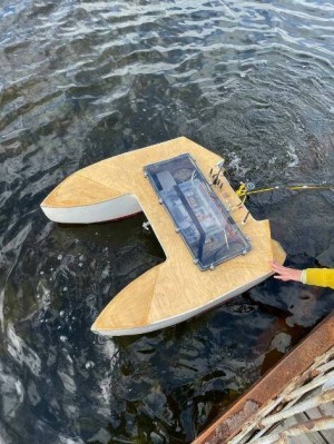 Разработка плавающего беспилотника началась в 2018 году. В задачи водного дрона входит сбор данных о состоянии водной среды в малых и средних водоемах. Конструкция оснащена необходимым набором датчиков, аккумулятором и солнечной батареей, что позволяет использовать его в качестве автономного судна и управлять им с помощью оператора с берега.