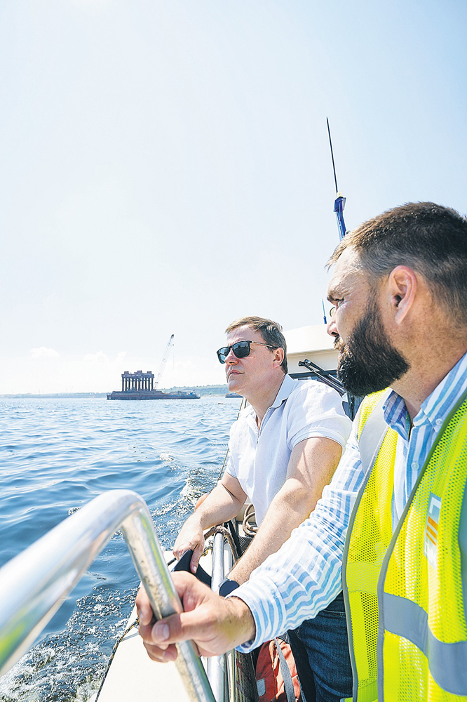 — Используются уникальные методы производства работ и технологические подходы, которые еще нигде не реализовывались. Многое приходится делать впервые, — сказал Дмитрий Азаров. — Отмечу самоотверженность и профессионализм всех, кто работает на строительстве моста, а также инженерно-конструкторский гений.