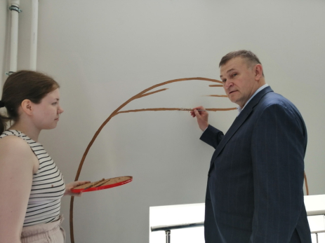 Глава города поговорил с художником, взял кисть и нарисовал сферу Юпитера. Это станет сюрпризом для учеников и педагогов, которые будут знать, что к украшению интерьера приложил руку мэр.