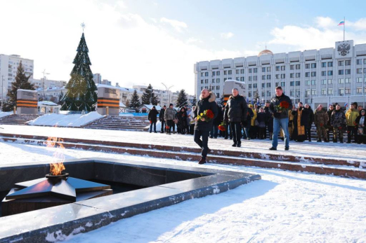 В память о погибших бойцах Вячеслав Федорищев вместе с военнослужащими и близкими погибших возложил цветы к вечному огню на площади у областного правительства. Также там прошла панихида по жертвам ракетного удара.