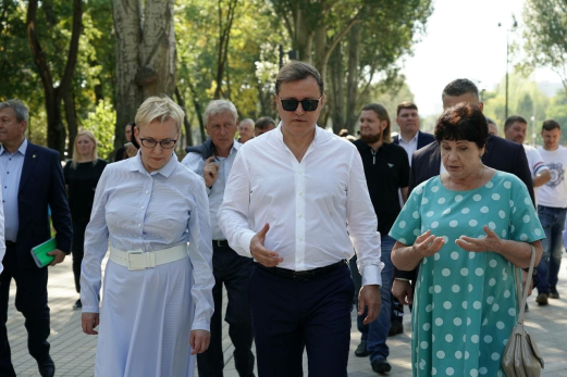 Обновленный парк уже стал местом притяжения горожан, здесь проводят досуг жители разного возраста: много родителей с детьми, пенсионеров. Губернатор пообщался с жителями, поинтересовался их впечатлением от пребывания в парке. «Красота! Живем тут рядом, гулять здесь будем, - с удовольствием поделились отдыхающие в парке пенсионерки. - Мы контролировали, как здесь работы двигались. Молодцы, спасибо за парк».