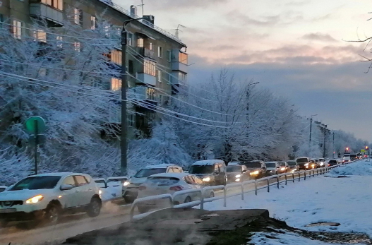 Другая пробка в сторону СНПЗ в то же время растет на улице Циолковского. С нее зачастую сворачивают около школы и едут через жилой двор, чтобы объехать пробку. Жильцы этому противятся и просят запретить проезд.