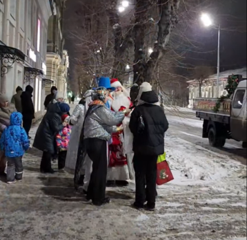 По улицам ходили Дед Мороз, Снегурочка и компания сказочных персонажей. Они стучали в окна магазинов и организаций, поздравляя с Новым годом, а также активно общались с прохожими, которые читали им стихи и пели песни. В ответ сызранцы получали подарки.