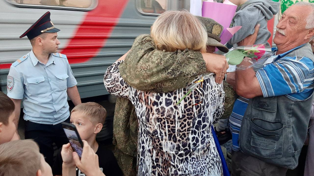 В Сызрани на вокзале встретили военнослужащих железнодорожных войск, участвовавших в специальной военной операции на Донбассе. Военных встречали родные и близкие, представители администрации, думы и патриотических объединений и города. Семьи ждали возвращения своих героев несколько месяцев и не скрывали слезы радости.