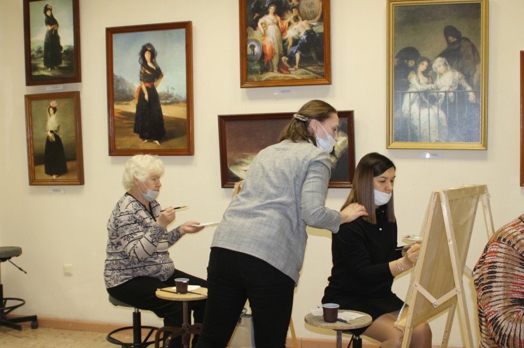 Арт-пространство включало шесть тематических мастерских: «Портрет», «Зимний пейзаж», «Летний пейзаж», «Декоративный натюрморт», «Анималистическая живопись» и «Абстракция».