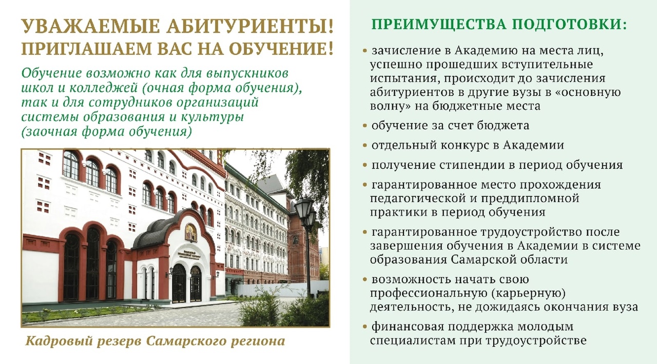 • гарантированное трудоустройство после завершения обучения в Академии в системе образования Самарской области
