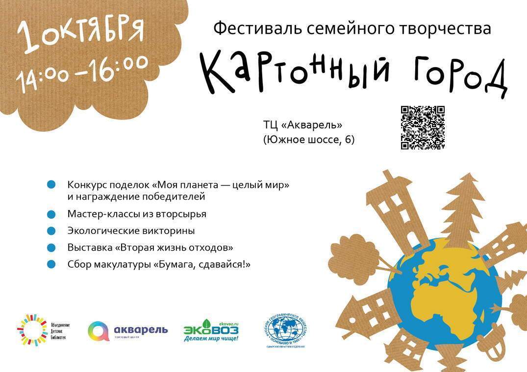 Конкурс семейного творчества «Картонный город»Центральным событием фестиваля станет конкурс семейного творчества «Моя планета – целый мир». Его участники: семейные коллективы c детьми. Заявки от семейных команд принимаются до 28 сентября 2023 года.