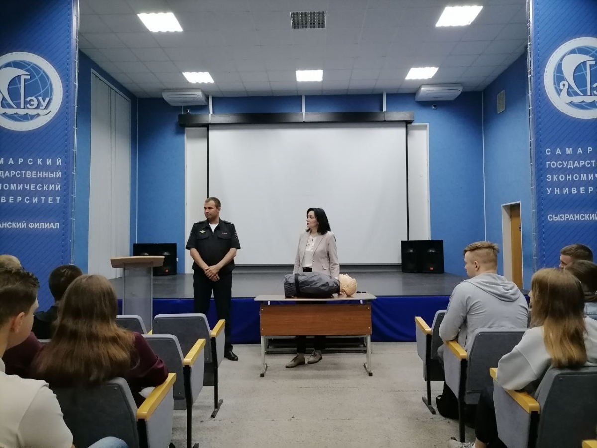 О безопасном поведении в местах отдыха на водоемах (оборудованные и не оборудованные), массового скопления людей (городские пляжи), правилах охраны жизни людей на водных объектах в летний период студентам рассказали заместитель начальника Сызранского ЛО МВД России на транспорте подполковник полиции Назаров А.А. и инспектор ОДН ЛОП в речном порту г. Сызрани Сызрансокго ЛО МВД России на транспорте лейтенант полиции Ревякин Е.В.