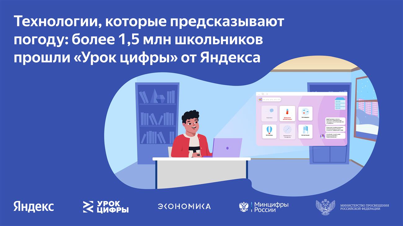 1,5 миллиона школьников прошли "Урок цифры" от Яндекса, реализуемого в поддержку федерального проекта "Кадры для цифровой экономики" национального проекта "Цифровая экономика Российской Федерации".