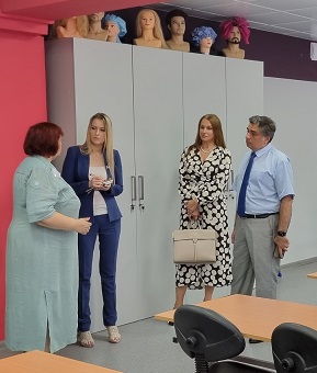 Затем вместе с министром Яна Валериевна посетила Самарский государственный колледж сервисных технологий и дизайна. Директор колледжа Татьяна Александровна Санникова подробно рассказала и провела экскурсию по мастерским федерального проекта "Молодые профессионалы". Просторные современные аудитории с оборудованием для обучения парикмахерскому искусству, компьютерный класс для графического дизайна, кабинет цифрового модельера и класс по администрированию отелей – всё это сделано в рамках национального проекта России. На данный момент в колледже работает приёмная комиссия и уже сейчас конкурс на специализации от 2х до 5-ти человек на место. Важно то, что прийти на обучение в мастерские колледжа может не только молодёжь, но и те, кто хотят сменить профессию или повысить свою квалификацию. Для этого здесь есть всё необходимое.