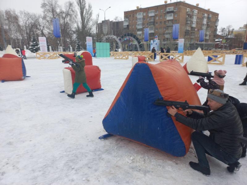 Лазертаг и снежные бои: на площади Куйбышева организовали зимние забавы