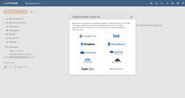 Офисный пакет приложений «Р7-Офис» поддерживает интеграцию сторонних хранилищ файлов.