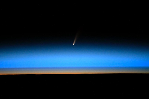 Получилась непередаваемая красота. Роскосмос сегодня опубликовал сделанное с орбиты фото первой яркой кометы 2025 года.