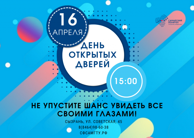 Акция пройдет в субботу, 16 апреля и начнется в 15:00. «Увидеть всё своими глазами»: именно под таким девизом пройдет день открытых дверей в сызранском филиале СамГТУ.