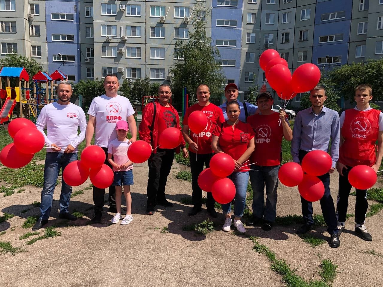 17 июня в Центральном районе г.о. Тольятти команда КПРФ провела ряд мероприятий, в ходе которых, коммунисты и комсомольцы раздавали жителям свежий номер партийной газеты, а детям вручали красные воздушные шары.