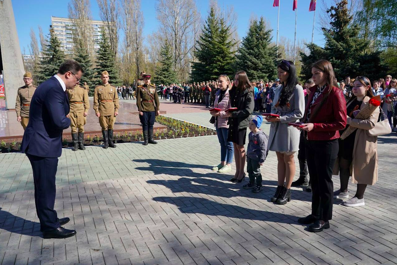 В субботу, 7 мая, Губернатор Дмитрий Азаров принял участие в церемонии возложения цветов к Вечному огню памятного знака Монумент Славы в честь 77-ой годовщины Победы в Великой Отечественной войне и вручил государственные награды Российской Федерации семьям погибших военнослужащих - участников военной спецоперации на Украине. Церемония прошла в Парке Победы в Тольятти.