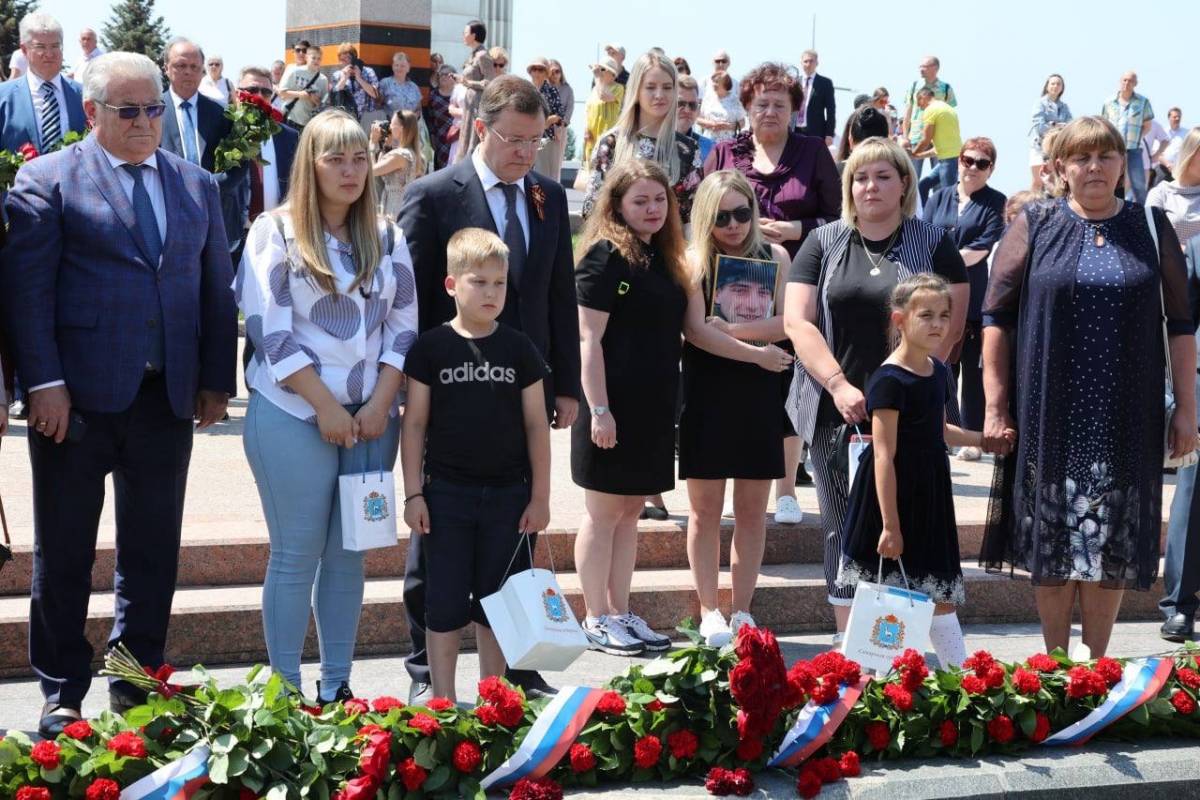 В День памяти и скорби глава региона, секретарь регионального отдления партии «Единая Россия» Дмитрий Азаров возложил цветы к Вечному огню и горельефу "Скорбящей Матери-Родине" вместе с семьями погибших в ходе спецоперац