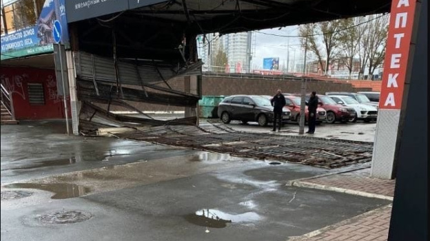 «Империя» пала: штормовой ветер сорвал обшивку с моста у торгового центра