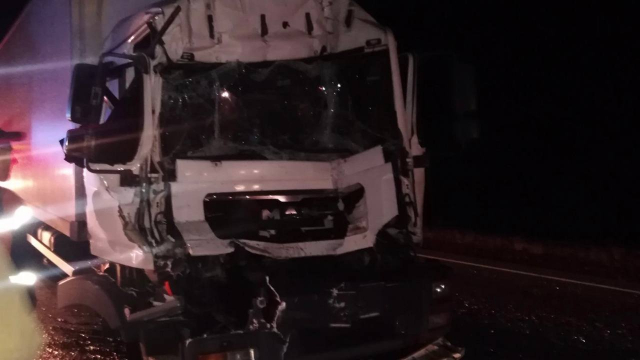 В Хвалынском районе вечером, в районе 23:00, на 72 километре трассы столкнулись грузовые фуры МАН и МАЗ. Авария была жесткой, грузовики получили приличные повреждения.