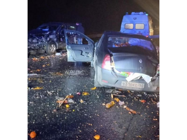 В районе 17.30 на 922 километре федеральной трассы М-5 лоб в лоб столкнулись Renault и Ssang Yong из Самарского региона. В ГУ МВД России по Самарской области сообщили, что водитель за рулем Renault выехал на встречную полосу, где и произошло столкновение. На фото видно, что обе машины получили серьезные повреждения. В одной из иномарок были фрукты, которые буквально засыпали место аварии.