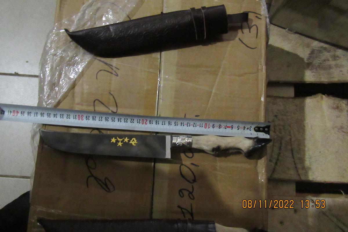 Самарские таможенники выявили незадекларированную коммерческую партию сувенирных национальных ножей и топориков ручной работы.