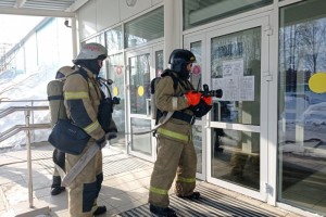 На занятии отрабатывались вопросы организованной эвакуации людей из здания, действия персонала и личного состава пожарно-спасательных подразделений по тушению предполагаемого пожара.