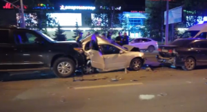 В региональном МВД сообщили, что в 20:40 автомобиль Land Cruiser двигался по Московскому шоссе в сторону города. Во время движения в районе пересечения с улицей XXII Партсъезда водитель не выбрал безопасную скорость движения и не успел вовремя затормозить. "Тойота" врезалась в попутную легковушку, которая по инерции продолжила движение и врезалась в впереди идущее авто и так далее. В итоге ДТП собрало семь автомобилей.