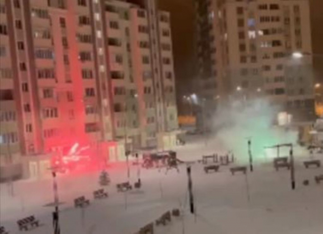 На кадрах, которые сняли очевидцы, видно, что кто-то запускал во дворе многоквартирных домов фейерверк, но в какой-то момент он взбесился и начал стрелять по людям, по окнам и припаркованным автомобилям. Те, кто был на улице, поспешили спрятаться в подъезде.