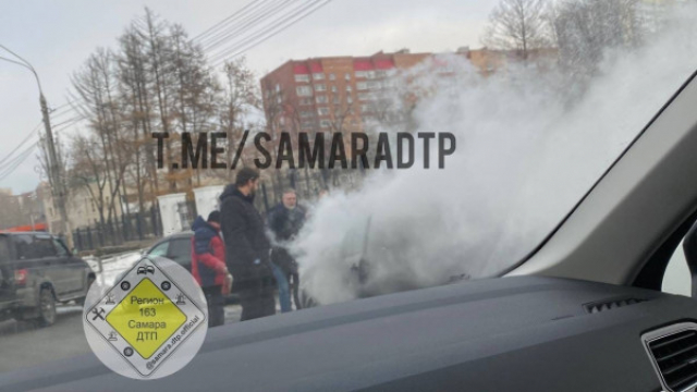 В среду, 30 ноября, среди бела дня на проезжей части в центре Самары загорелся автомобиль.