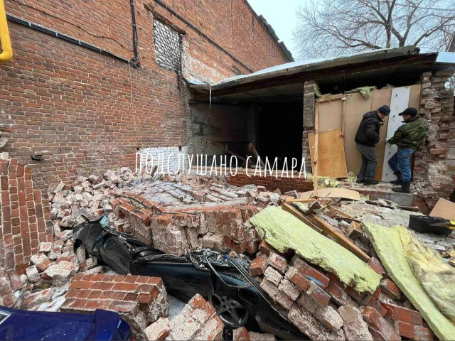 В Самарской области обрушилась стена дома и раздавила автомобиль
