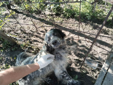 Все произошло в районе Сызранской Луки, где собака застряла в колючей проволоке у забора. На помощь четвероногому вызвали спасателей. По их словам, металл буквально обвился вокруг шеи животного, поэтому перед спасателями стояла задача аккуратно обрезать железную удавку.