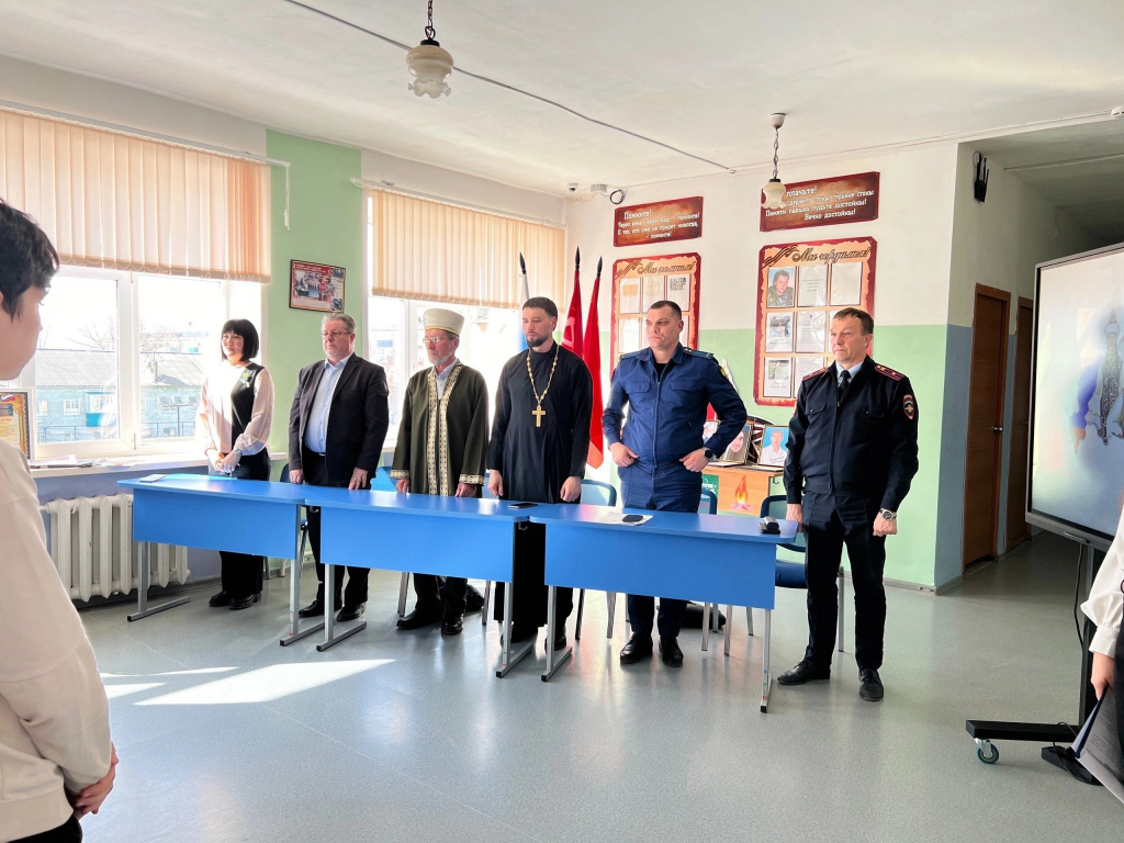 Обучающиеся вместе с гостями обсуждали такие вопросы как благородство, порядочность, взаимное уважение. И рассматривали проблемы недопущения терроризма и экстремизма в межнациональных отношениях.