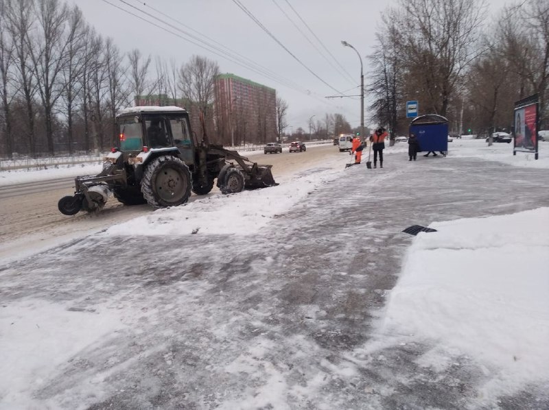 В круглосуточном режиме расчищается снег на остановках общественного транспорта, пешеходных переходах и подходах к ним.