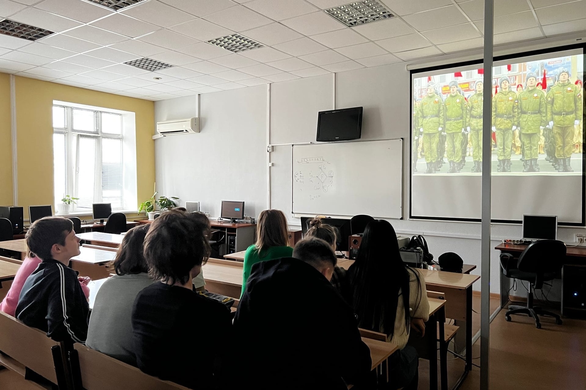 В рамках проводимых уроков был показан тематический фильм «Парад Памяти. Дорогой Победы», снятый по заказу Думы городского округа Самара. В нем и кадры современной жизни, и архивные записи того, как наши деды и прадеды шли по главной городской площади Куйбышева.