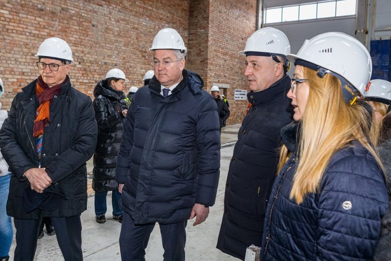 Виктор Кудряшов и Николай Ренц побывали на стройплощадке нового корпуса, где до конца года заработает новая линия по сортировке отходов и ознакомились с выпускаемой продукцией компании, полученной из вторичного сырья. Работы идут полным ходом. На сегодняшний день исполнение инвестпроекта составляет 58%. Оборудование закуплено на 80%. В мае здесь начнут монтаж автоматических линий с оптической сортировкой отходов мощностью 300 тыс. тонн в год. К концу весны планируется завершить монтаж электрических и водопроводных сетей, а также установку очистных сооружений. Осенью этого года закончится отделка нового помещения. И только после того, как будет сдан в эксплуатацию и заработает новый корпус, действующее производство начнет реконструкцию.