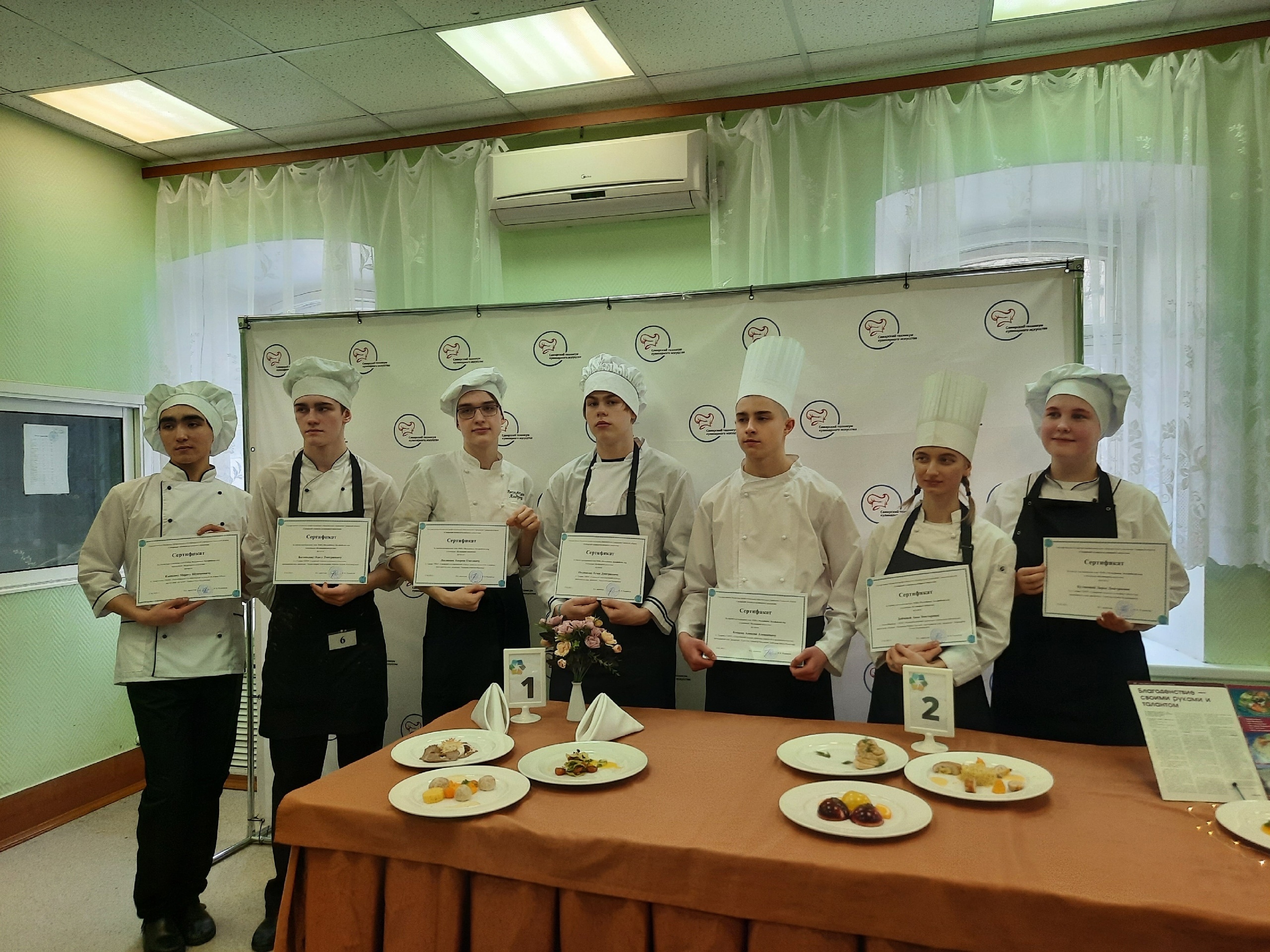 После того как все блюда вынесли в общий зал, ребята представили их перед наставниками и профессионалами. Каждому студенту жюри вручили дипломы участников и сказали напутственные слова.