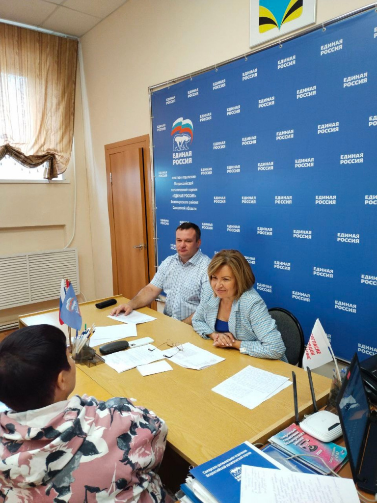 В Общественной приемной местного отделения партии «ЕДИНАЯ РОССИЯ» муниципального района Безенчукский Самарской области депутат Самарской Губернской Думы Марина Геннадьевна Сидухина совместно с Главой района Владимиром Васильевичем Аникиным провели прием граждан.