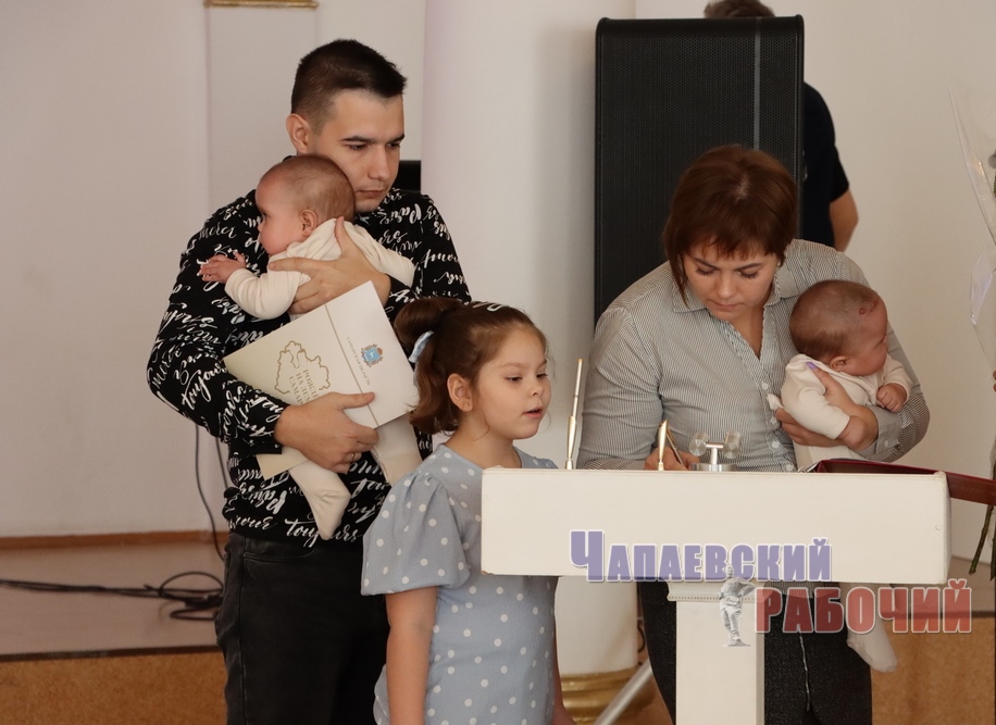 Как объяснила начальник отдела ЗАГС г. о. Чапаевск Ирина Белова, сегодняшняя церемония приурочена ко Всероссийскому дню отца. Однако в течение всего года организуются мероприятия по чествованию семей, в которых родились двойни или третий и последующий ребенок. На этот раз всего их пять, в четырех из них появились сразу два малыша.