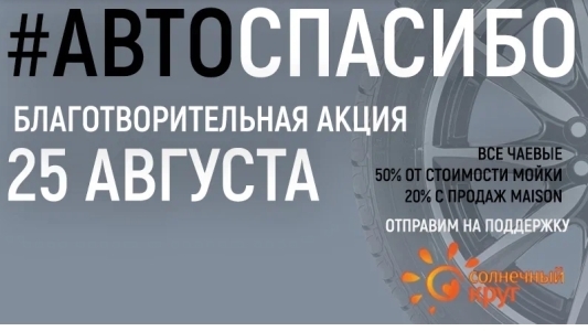 25 августа в Тольятти пройдет благотворительная акция #Автоспасибо в поддержку центра «Солнечный круг». Вырученные средства пойдут на помощь детям с ограниченными возможностями здоровья.