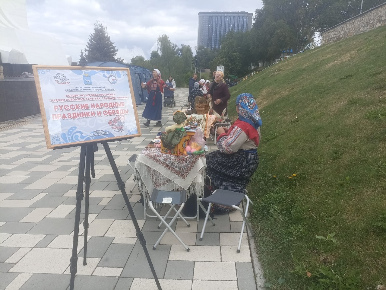 Кроме того, на сцене набережной организовано выступление детских творческих коллективов Самары. Работает фотозона в русском народном стиле.