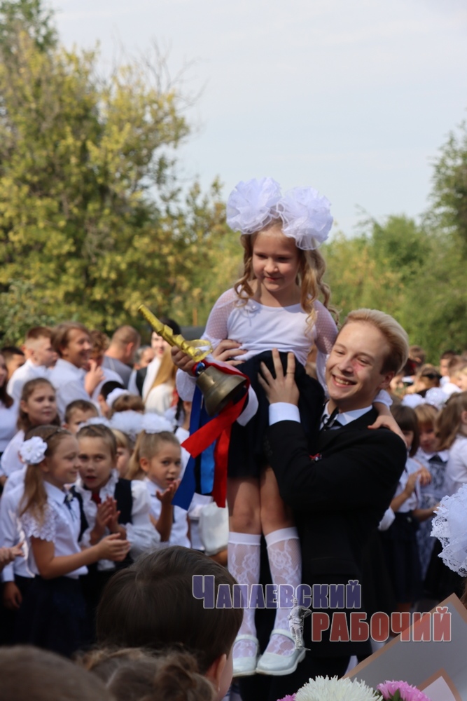 Правом дать первый школьный звонок были удостоены одиннадцатиклассник, победитель областного конкурса «Ученик года» Даниил Шаварин и первоклассница София Грешнева. После этого ребята вслед за своими учителями отправились за парты — получать новые знания.