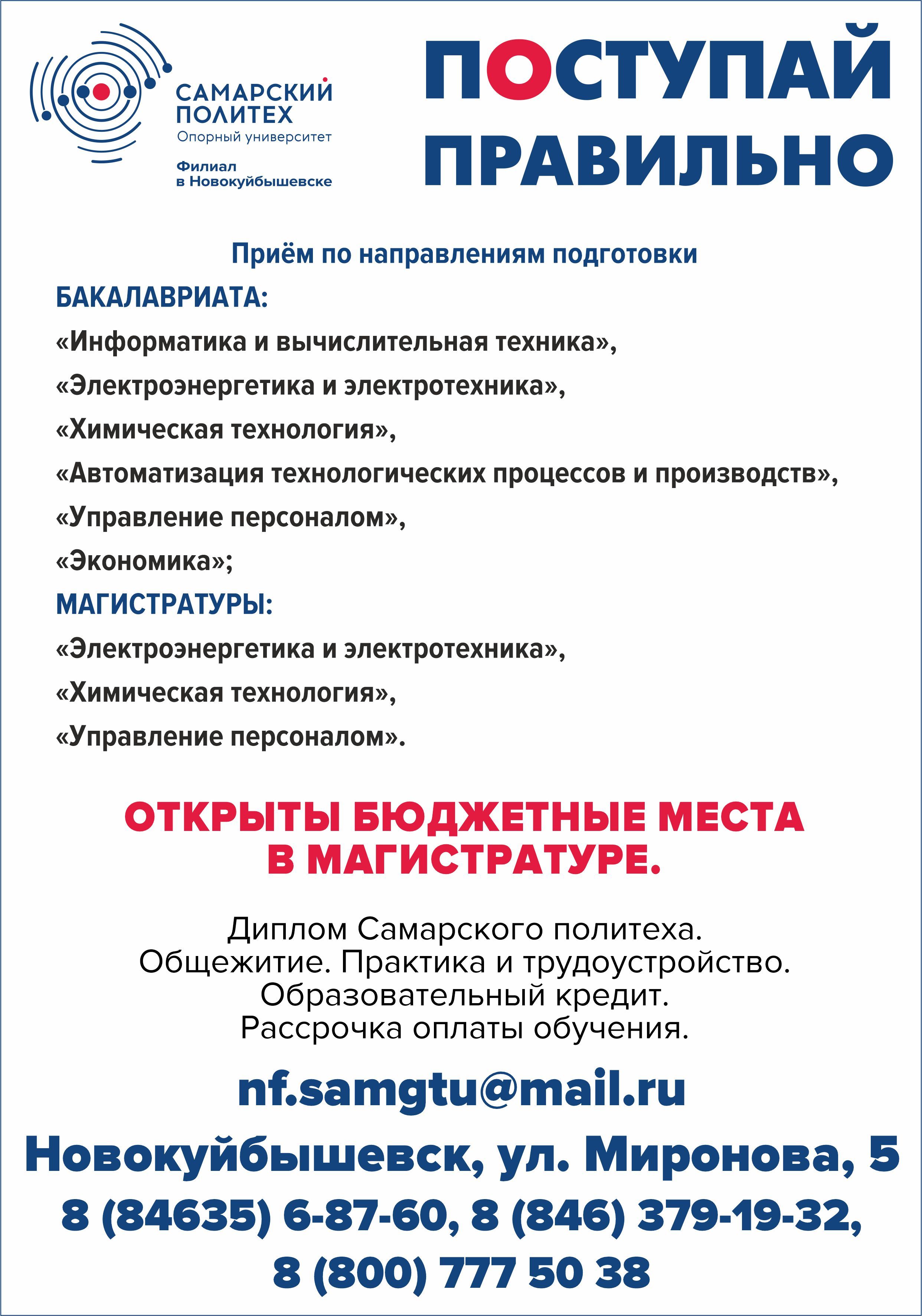 Новокуйбышевский филиал СамГТУ приглашает получить высшее образование по новым образовательным программам.