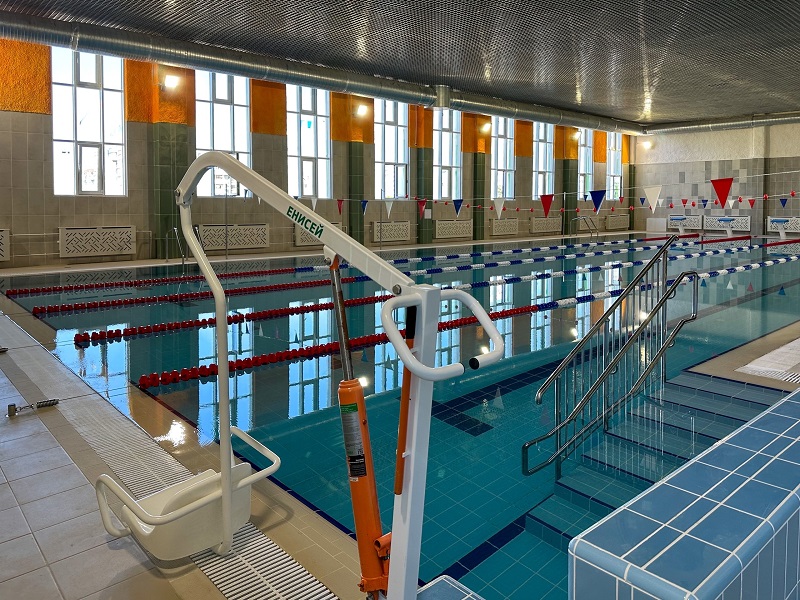 Градоначальник отметил, что объект получился очень насыщенным: 2 спортивных зала, бассейн, зал для гимнастики, хоккейный и футбольный корты, множество спортивных тренажеров.