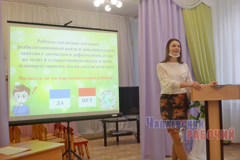 Затем учитель-дефектолог Алина Орлова провела игру с родителями «Знаешь ли ты права детей?» Ответы на некоторые вопросы не у всех мам и пап в зале были одинаковыми. Педагог-психолог Михаил Федоров продолжил эту тему и представил собравшимся результаты анкетирования семей, получателей услуг центра. Он акцентировал внимание на том, насколько тонка грань между правами и обязанностями несовершеннолетних.