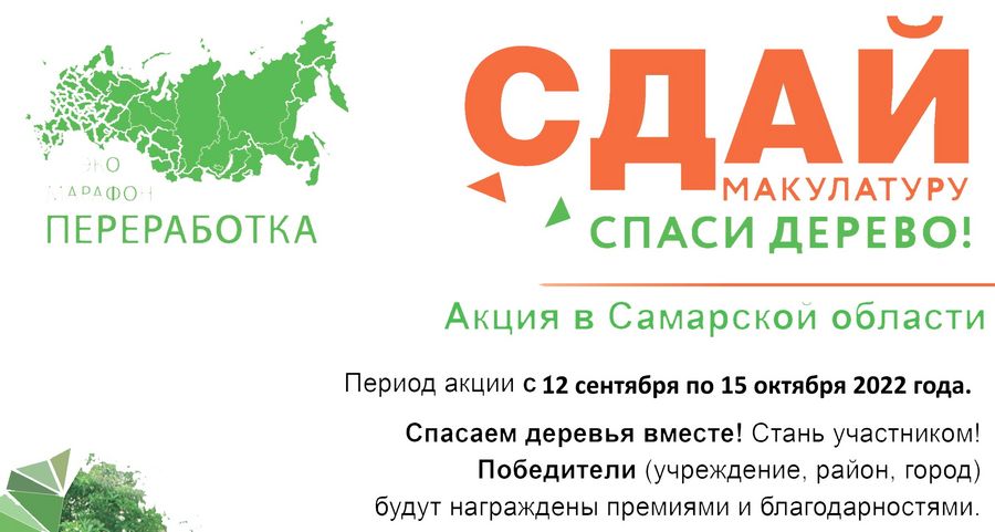 Осенью 2022 года в Самарской области стартует Всероссийский Эко-марафон ПЕРЕРАБОТКА «Сдай макулатуру – спаси дерево», который проводится при поддержке краудфандинг проекта «Подари Дерево» www.подари-дерево.рф .