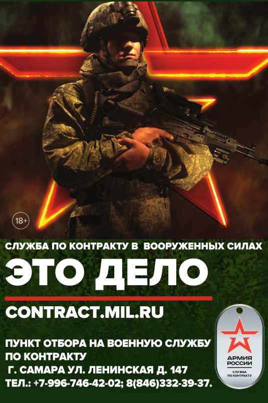 Пункт отбора на военную службу по контракту (1 разряда) г. Самара проводит отбор граждан к поступлению на военную службу по контракту в Вооруженные Силы Российской Федерации.
