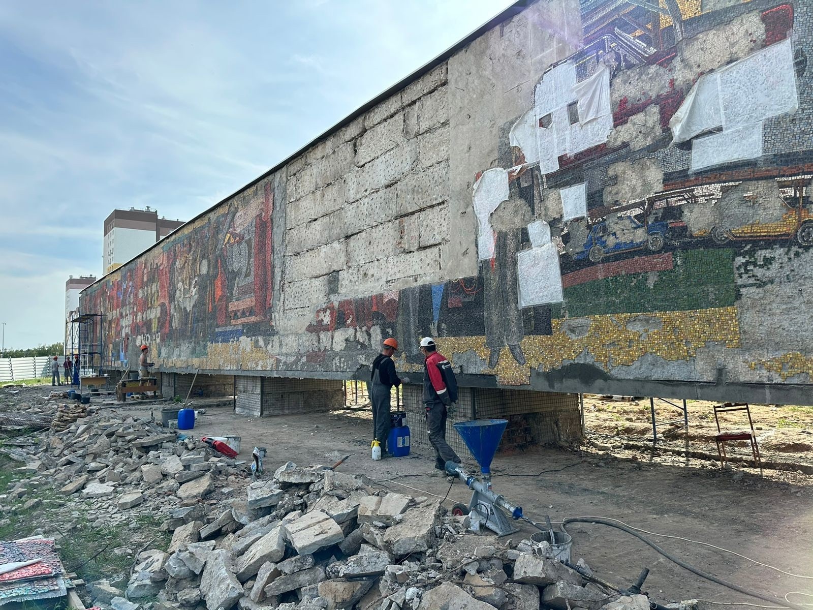 Уникальная работа: В Тольятти удалось восстановить 145 кв.м. стелы-панно «Радость труда»