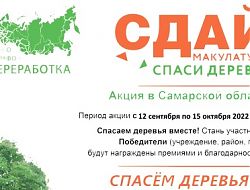 Осенью 2022 года в Самарской области стартует Всероссийский Эко-марафон ПЕРЕРАБОТКА «Сдай макулатуру – спаси дерево», который проводится при поддержке краудфандинг проекта «Подари Дерево» www.подари-дерево.рф .
